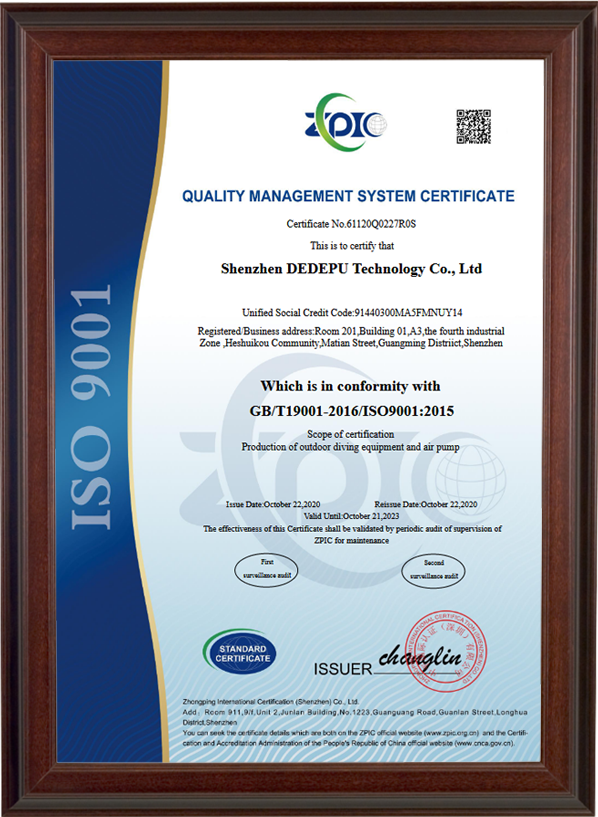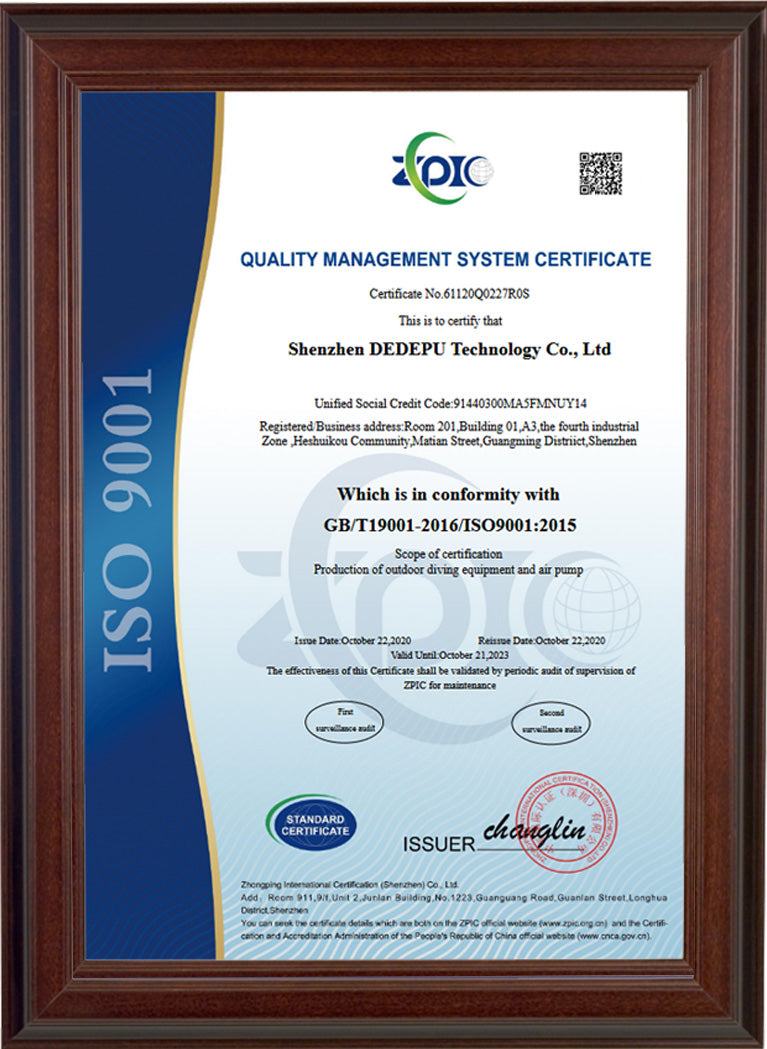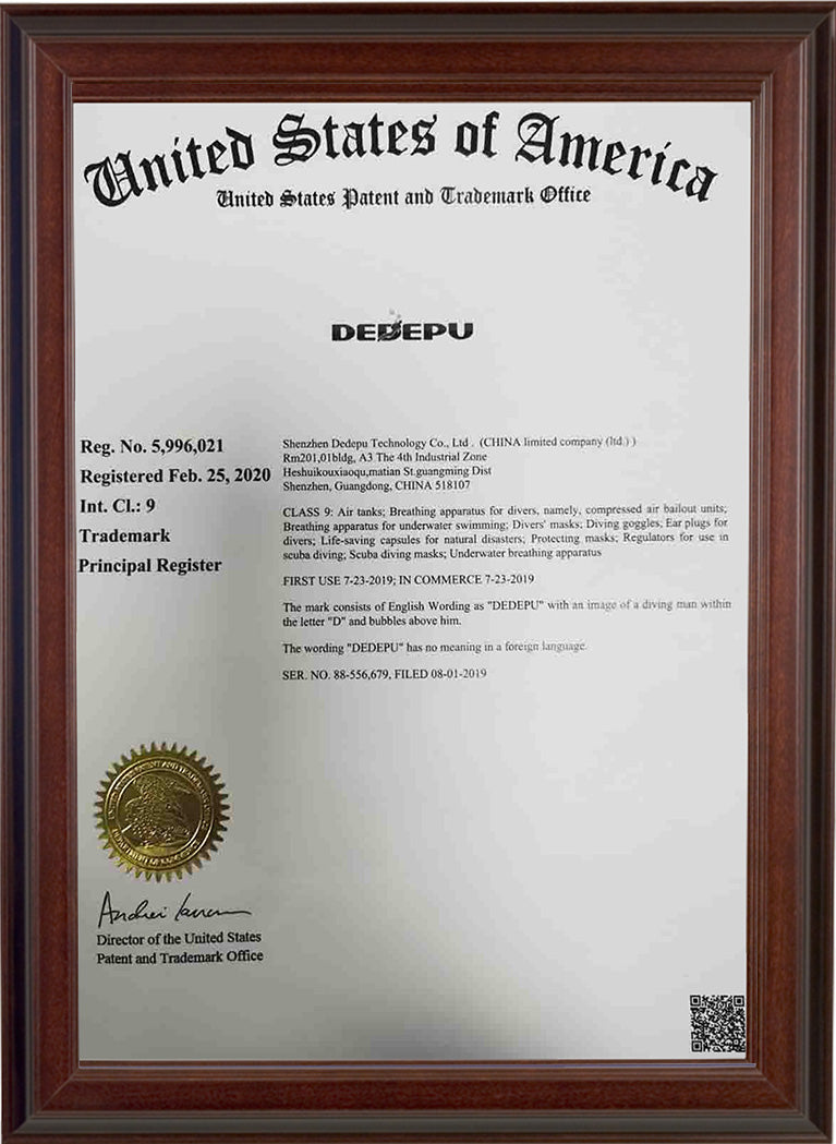 DEDEPU products feature multiple safety-focused patents,advancing secure and reliable diving solutions.