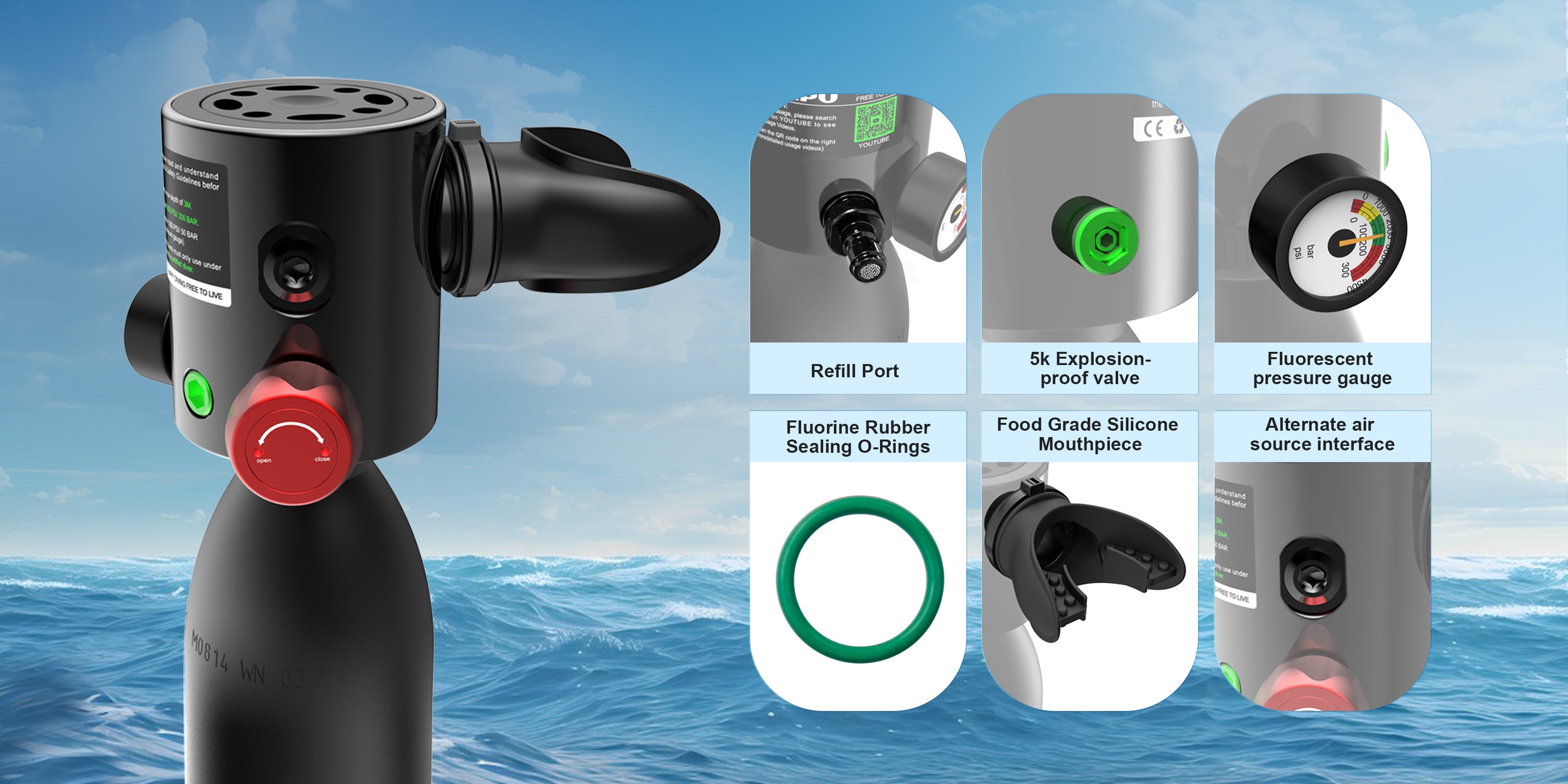 ✅Keep the inside of the cylinder dry.If seawater enters, rinse with fresh water and dry completely.