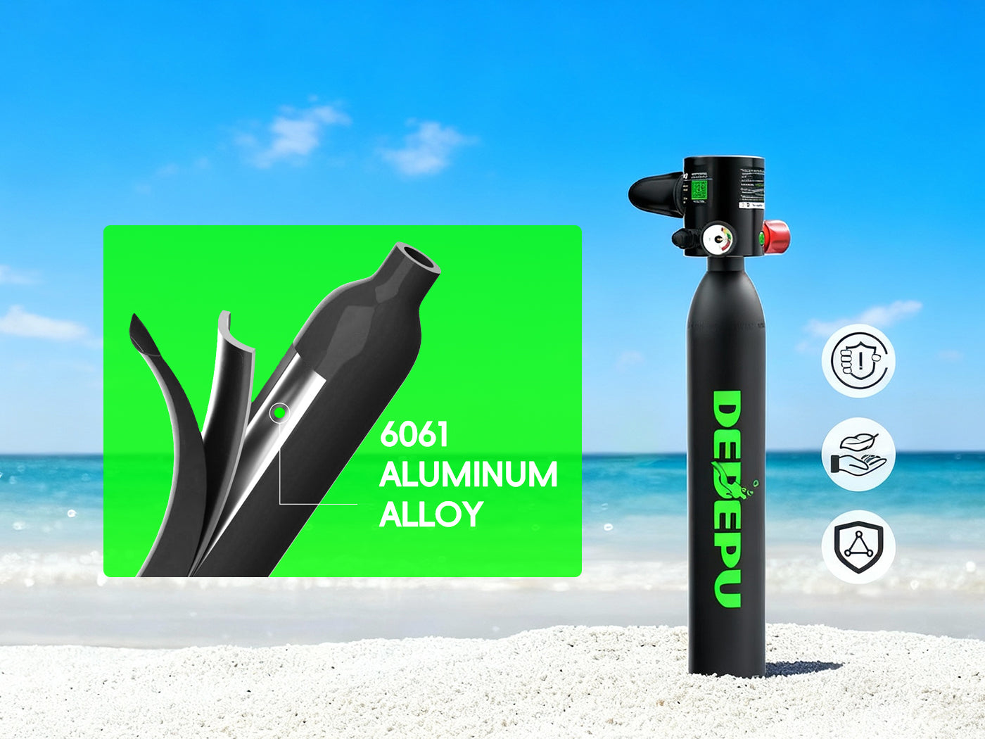 Rest assured—your DEDEPU scuba tank is CE and DOT certified. These certifications make it easy to refill your tank at any dive shop. Don’t forget to bring along your scuba diving license for a seamless experience! -